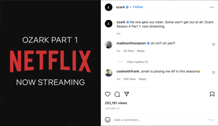 As Senior Copywriter on the Netflix Account, I was tasked with ideating work on a few shows, culminating with our Shorty and Clio award-winning work in promotion of the hit series, Ozark.